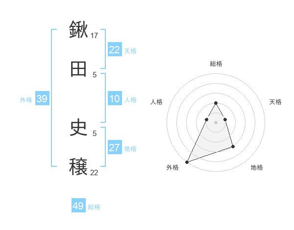 鍬田 史穣さんを姓名の画数から五運を鑑定