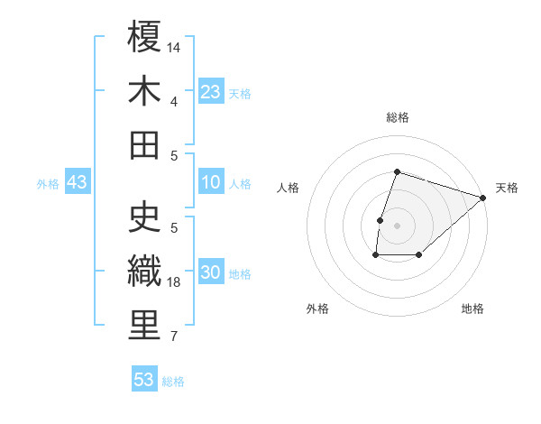 榎木田 史織里さんの総格は53画の3点!