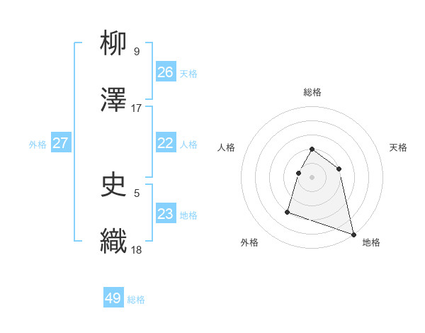 柳澤 史織さんを姓名の画数から五運を鑑定