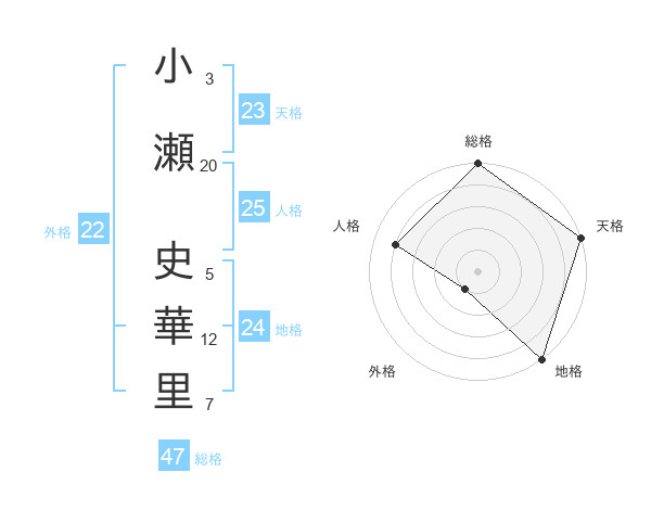 小瀬 史華里さんを姓名の画数から五運を鑑定
