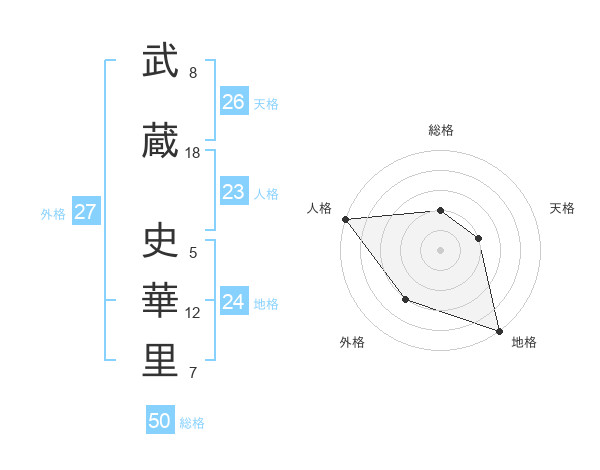 武蔵 史華里さんの総格は50画の2点!