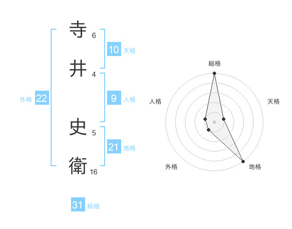 寺井 史衛さんの総格は31画の5点!