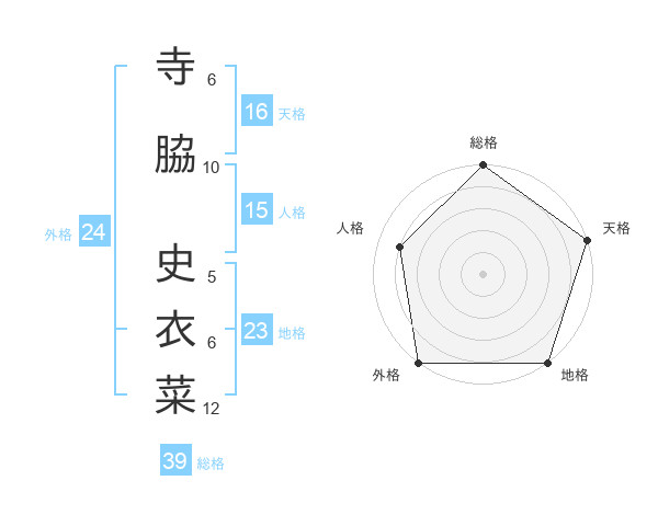 寺脇 史衣菜さんの総格は39画の5点!