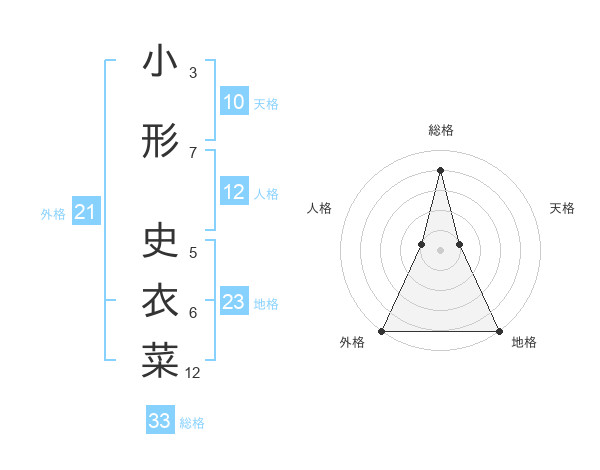 小形 史衣菜さんの総格は33画の4点!
