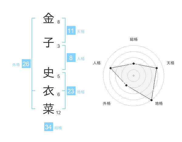 金子 史衣菜さんを姓名の画数から五運を鑑定