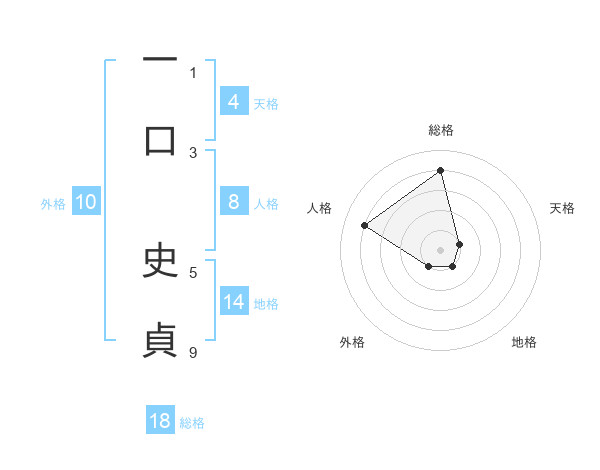 一口 史貞さんの総格は18画の4点!