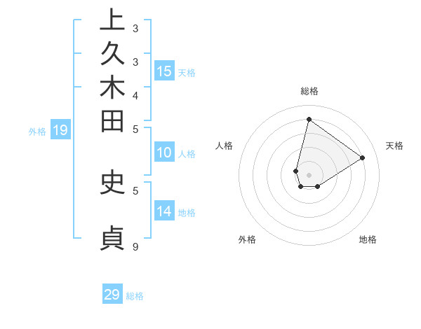 上久木田 史貞さんの総格は29画の4点!