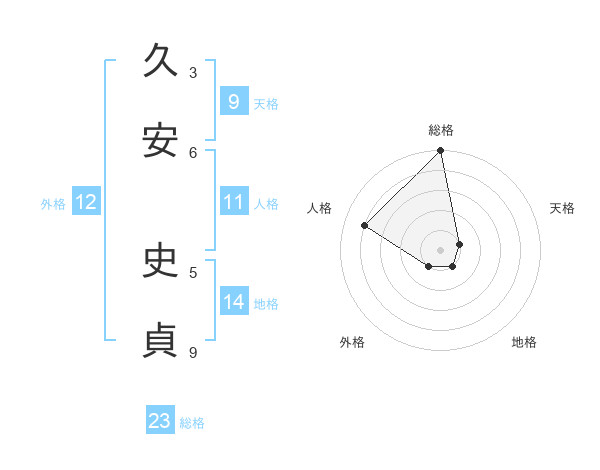 久安 史貞さんの総格は23画の5点!