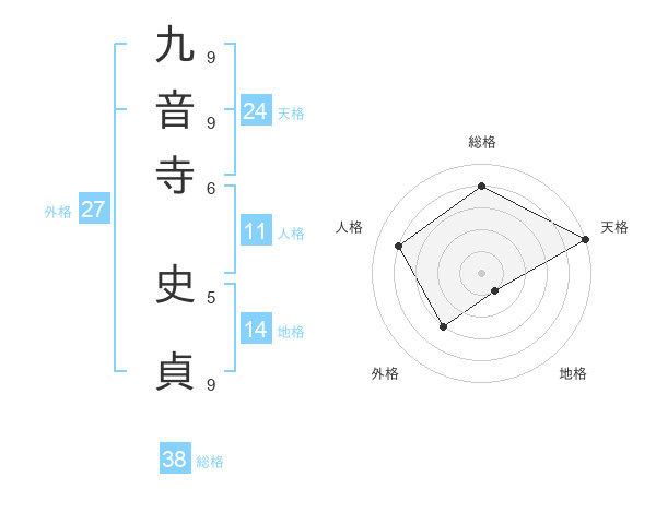 九音寺 史貞さんの総格は38画の4点!