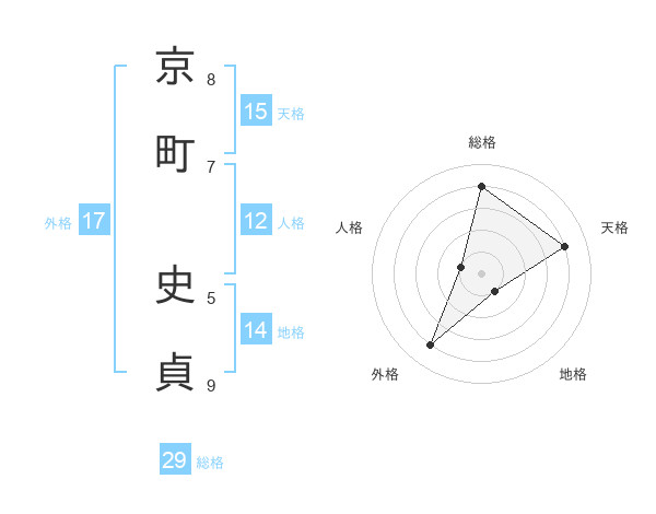 京町 史貞さんの総格は29画の4点!