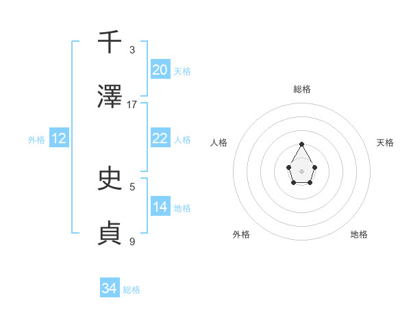 千澤 史貞さんを姓名の画数から五運を鑑定