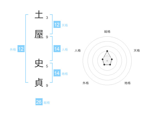 土屋 史貞さんの総格は26画の2点!