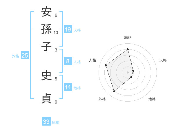 安孫子 史貞さんの総格は33画の4点!