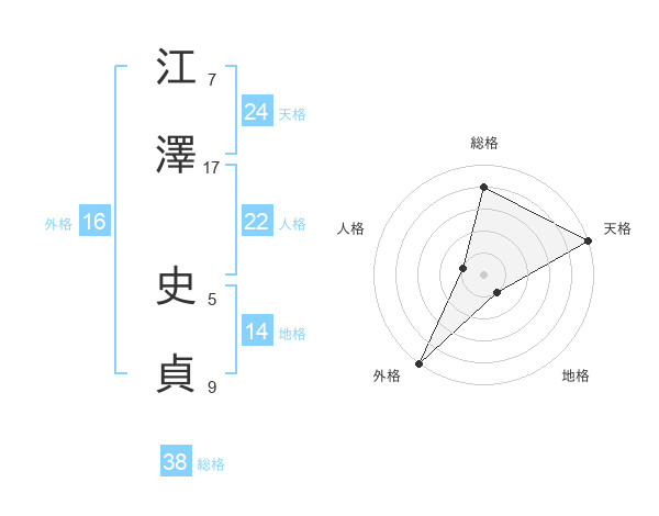 江澤 史貞さんを姓名の画数から五運を鑑定