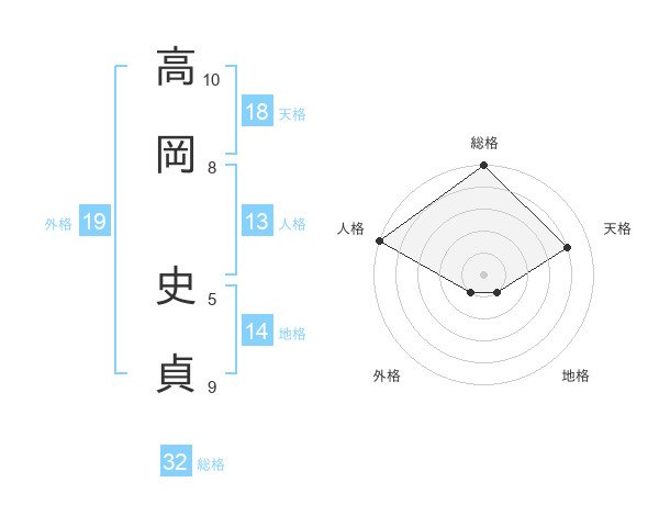 高岡 史貞さんを姓名の画数から五運を鑑定