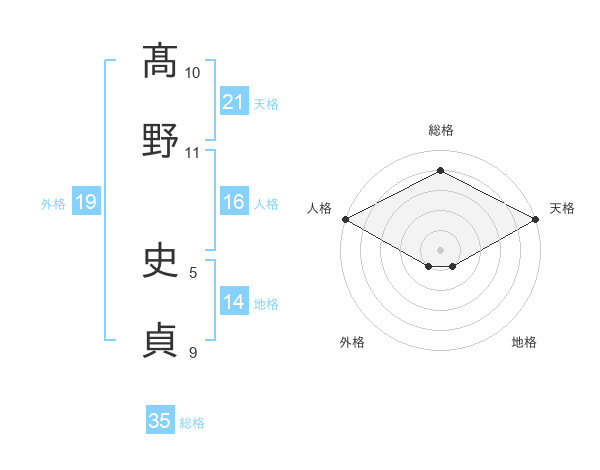 髙野 史貞さんの総格は35画の4点!