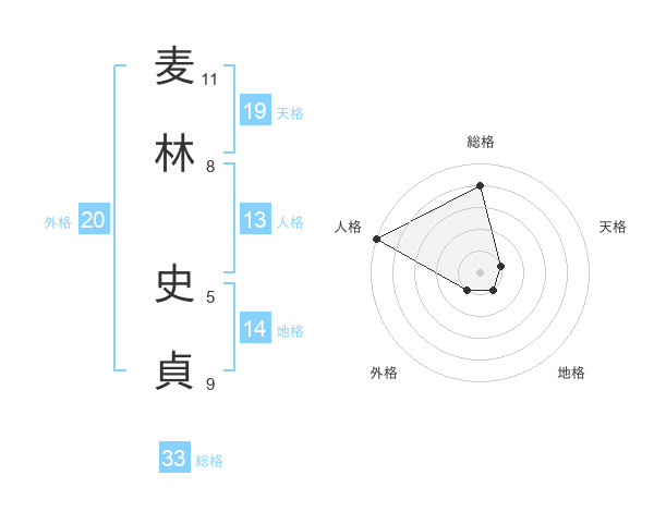 麦林 史貞さんの総格は33画の4点!