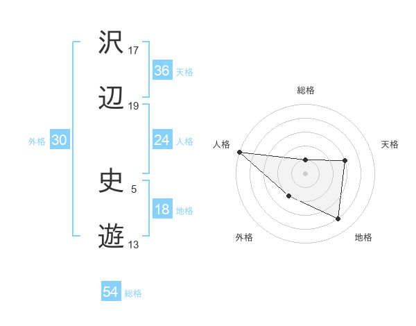 沢辺 史遊さんの地格は18画の4点!