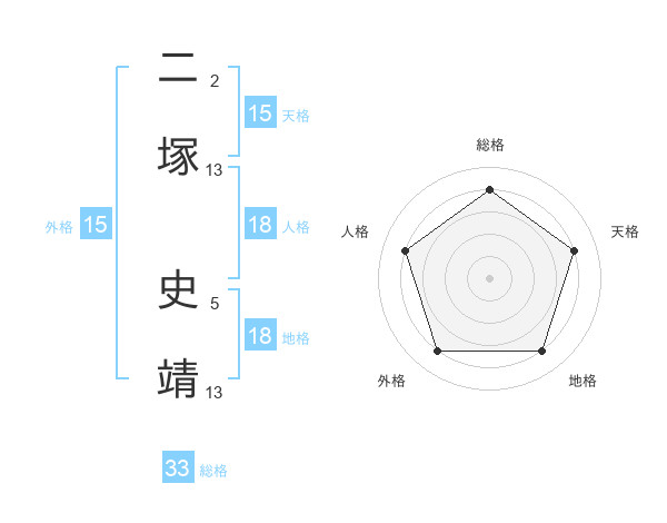 二塚 史靖さんの天格は15画の4点!