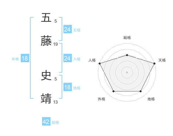 五藤 史靖さんの天格は24画の5点!