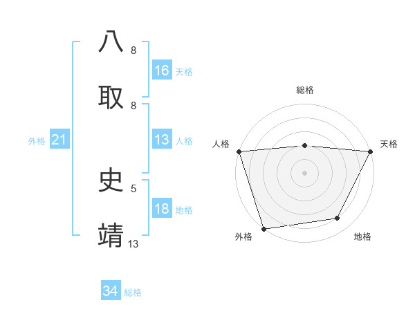 八取 史靖さんの外格は21画の5点!