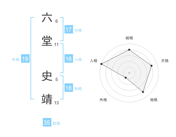 六堂 史靖さんを姓名の画数から五運を鑑定