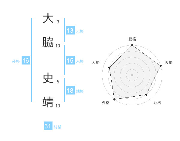 大脇 史靖さんを姓名の画数から五運を鑑定