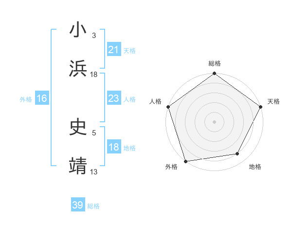 小浜 史靖さんの天格は21画の5点!