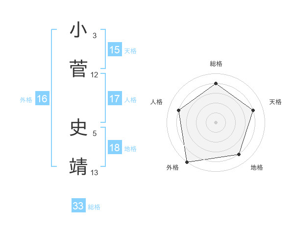 小菅 史靖さんの総格は33画の4点!