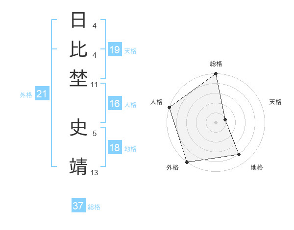 日比埜 史靖さんの総格は37画の5点!