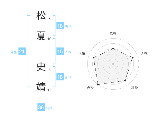 松夏 史靖さんの外格は21画の5点!