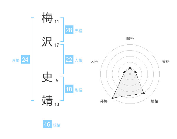 梅沢 史靖さんを姓名の画数から五運を鑑定