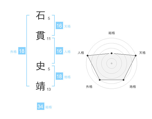 石貫 史靖さんを姓名の画数から五運を鑑定