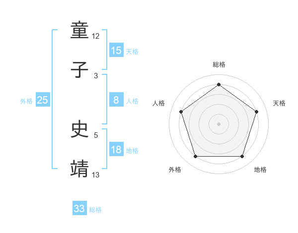 童子 史靖さんの総格は33画の4点!