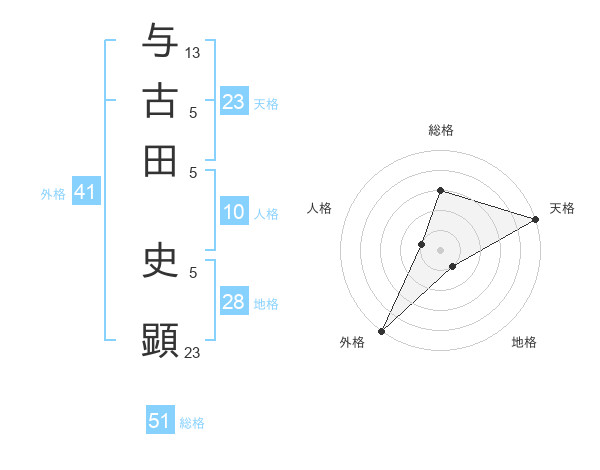 与古田 史顕さんを姓名の画数から五運を鑑定