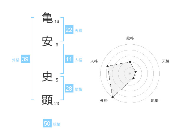 亀安 史顕さんを姓名の画数から五運を鑑定
