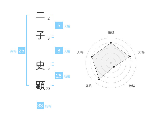 二子 史顕さんの天格は5画の4点!