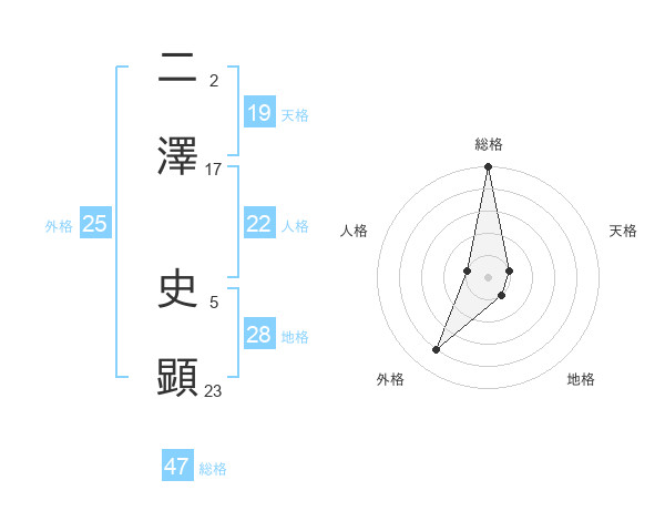 二澤 史顕さんの総格は47画の5点!
