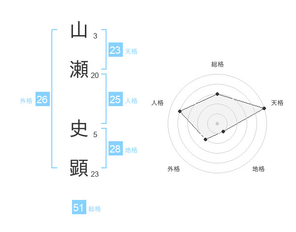 山瀬 史顕さんの総格は51画の3点!