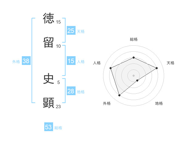 徳留 史顕さんの総格は53画の3点!