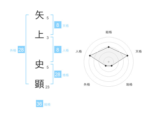 矢上 史顕さんを姓名の画数から五運を鑑定
