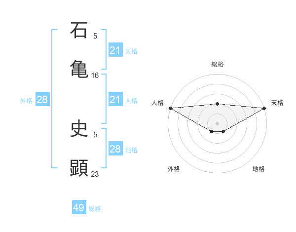 石亀 史顕さんの天格は21画の5点!