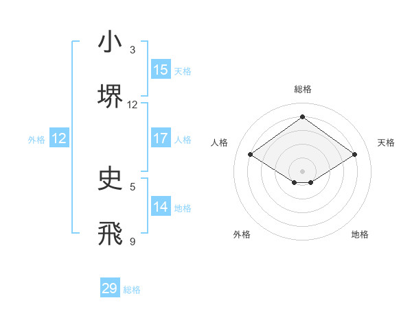 小堺 史飛さんを姓名の画数から五運を鑑定