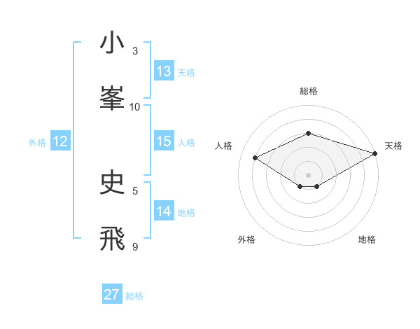 小峯 史飛さんを姓名の画数から五運を鑑定