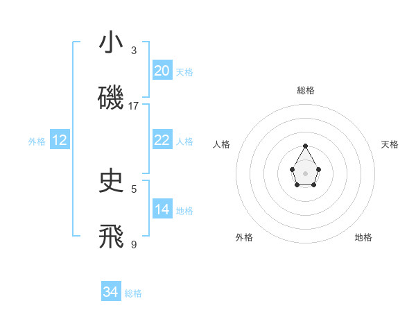 小磯 史飛さんを姓名の画数から五運を鑑定