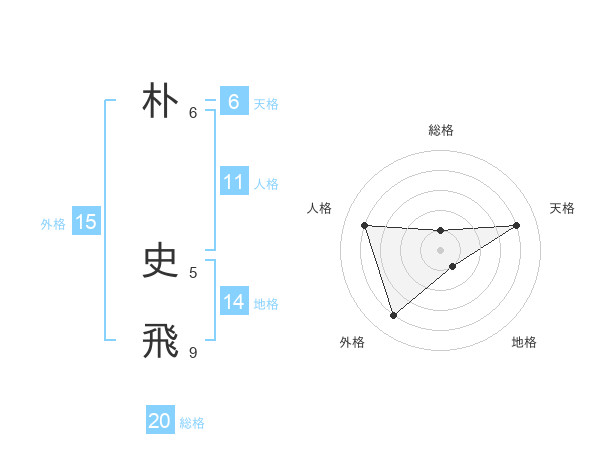 朴 史飛さんを姓名の画数から五運を鑑定