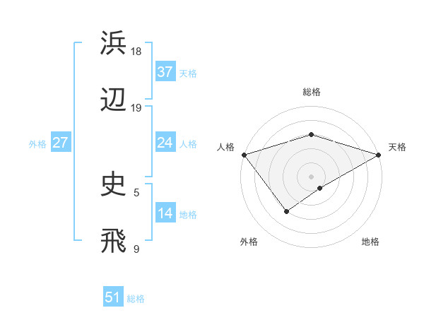 浜辺 史飛さんを姓名の画数から五運を鑑定
