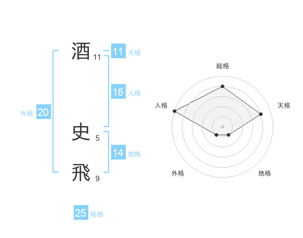 酒 史飛さんの総格は25画の4点!