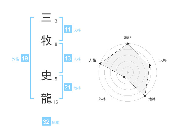 三牧 史龍さんの総格は32画の5点!