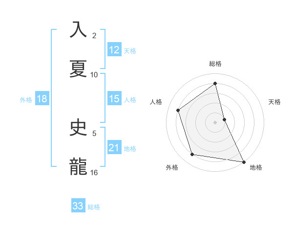 入夏 史龍さんを姓名の画数から五運を鑑定